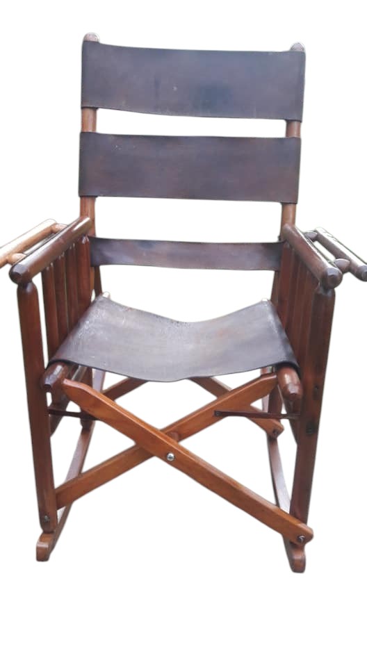 Mecedora en Cuero y Madera Maciza – Tradición y Confort en un Diseño Atemporal